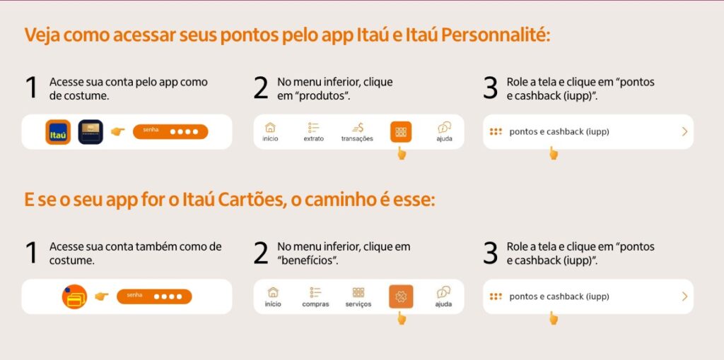 Você consegue consultar os pontos do Itaú iupp através do próprio aplicativo do banco ou dos aplicativos dos cartões de crédito do Itaú.