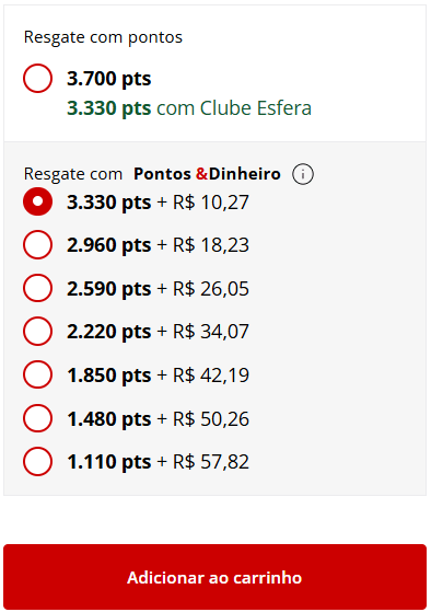 Essa ferramenta permite que você complete a quantidade de pontos necessária para uma transferência pagando a diferença em dinheiro.