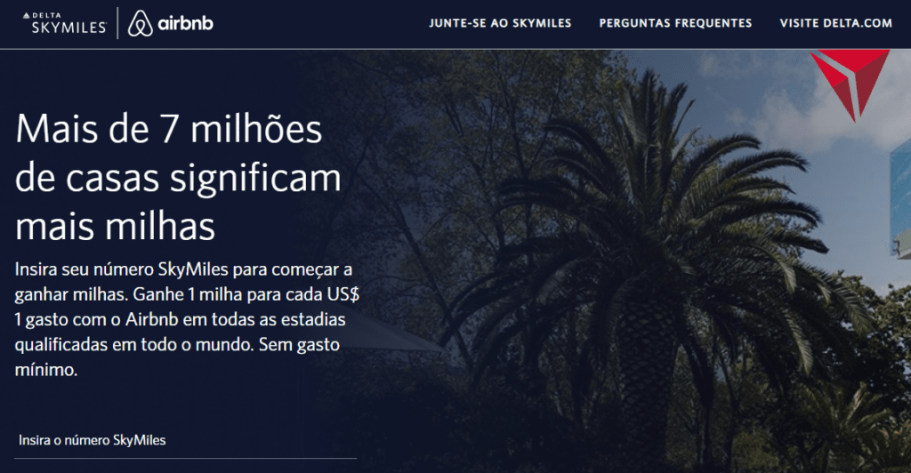 O programa Delta SkyMiles em parceria com o Airbnb oferece 1 milha a cada US$ 1 gasto e não precisa ser apenas em território americano para acumular.