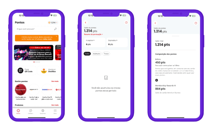 No entanto, é importante lembrar que o gerenciamento fica dentro da Esfera, o programa dos cartões Santander. Desse modo, o cliente poderá ver o saldo dos 2 programas na mesma plataforma.