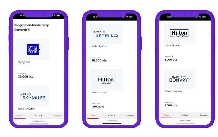 Além disso, também é possível desfrutar de todos os benefícios e parceiros que a Esfera oferece. Por exemplo, as companhias aéreas Azul, GOL, LATAM e Iberia.