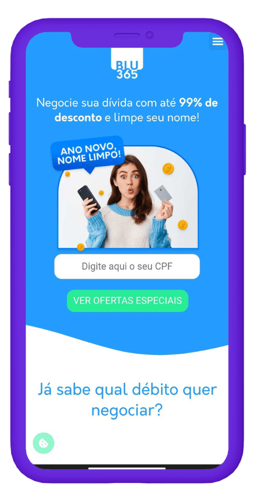 A Blue365 é uma plataforma de negociação de dívidas para quem possui débitos registrados no próprio CPF.