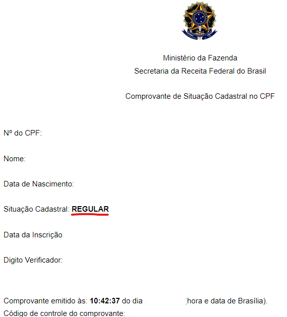 Contudo, lembramos que este comprovante não traz informações a respeito da situação financeira, econômica ou fiscal. Além disso, também não substitui um comprovante de inscrição no CPF.