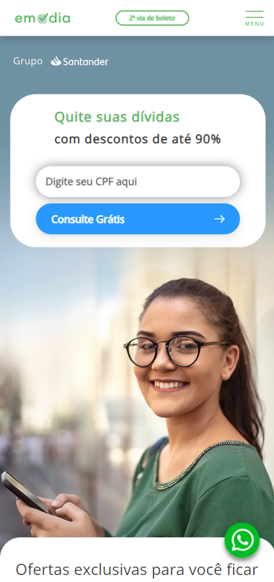 A Emdia é uma empresa que faz parte do Grupo Santander e oferece serviços de recuperação de crédito.