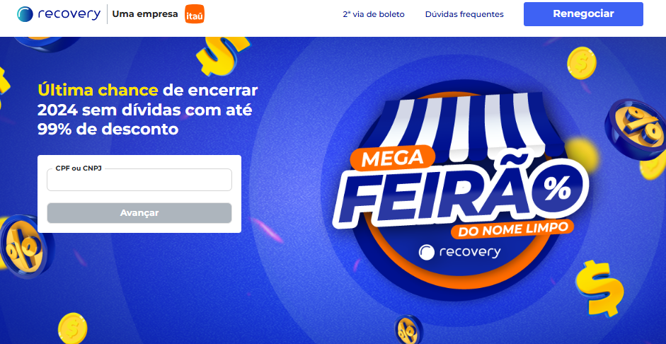 A recovery é uma empresa do grupo Itaú responsável por realizar negociações de dívidas.