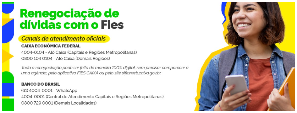 - Estudantes com débitos vencidos a mais de 360 dias até 30 de junho de 2023, que estejam inscritos no CadÚnico ou que tenham sido beneficiários do Auxílio Emergencial 2021, haverá desconto de até 99% do valor consolidado da dívida, e pagamento do saldo devedor em até 15 prestações mensais.