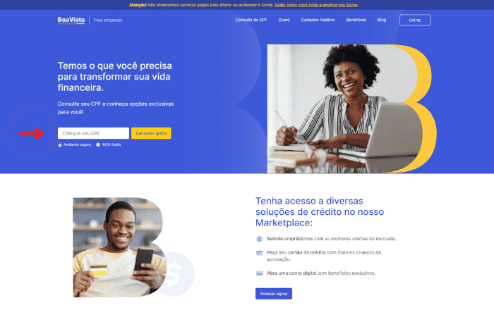 Para consultar de forma gratuita os score de crédito com seu CPF, o Boa Vista disponibilizou o site Consumidor Positivo, dessa forma, veja abaixo como realizar a consulta: