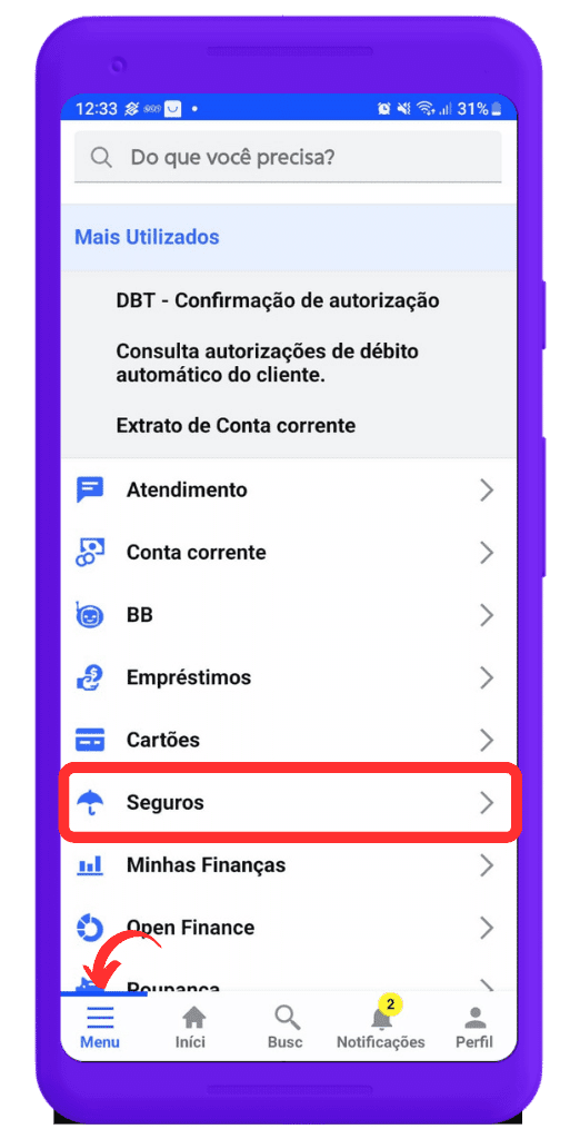 Além disso, você consegue acessar o serviços de seguro do BB por meio do aplicativo do Banco do Brasil. Para isso, basta: