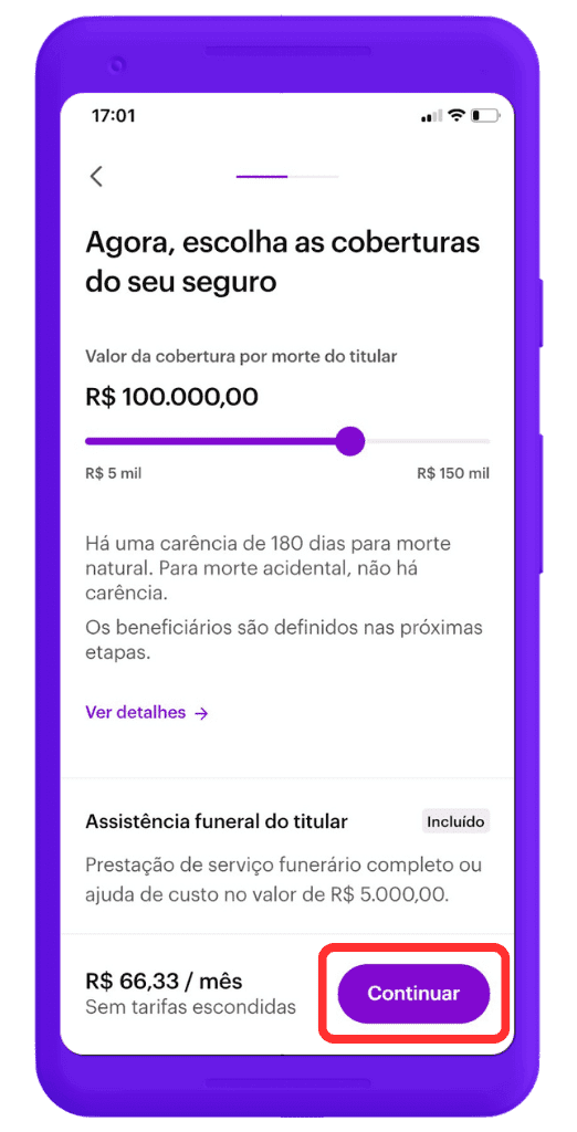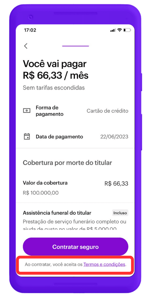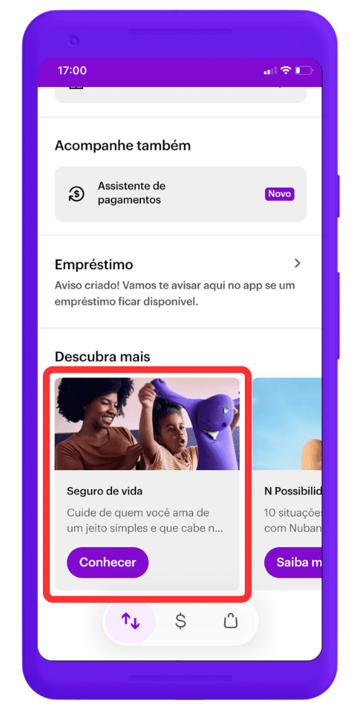 Para contratar, basta abrir seu aplicativo Nubank disponível na Play Store ou App Store e conferir se a opção Seguro de vida está disponível para você.