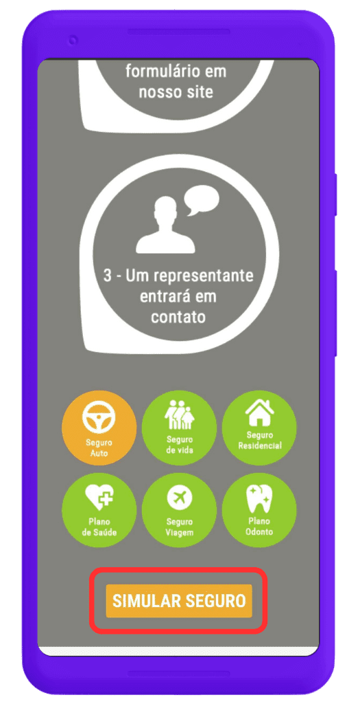 5. Vale lembrar que, antes disso, você precisa selecionar qual tipo de seguro deseja simular.