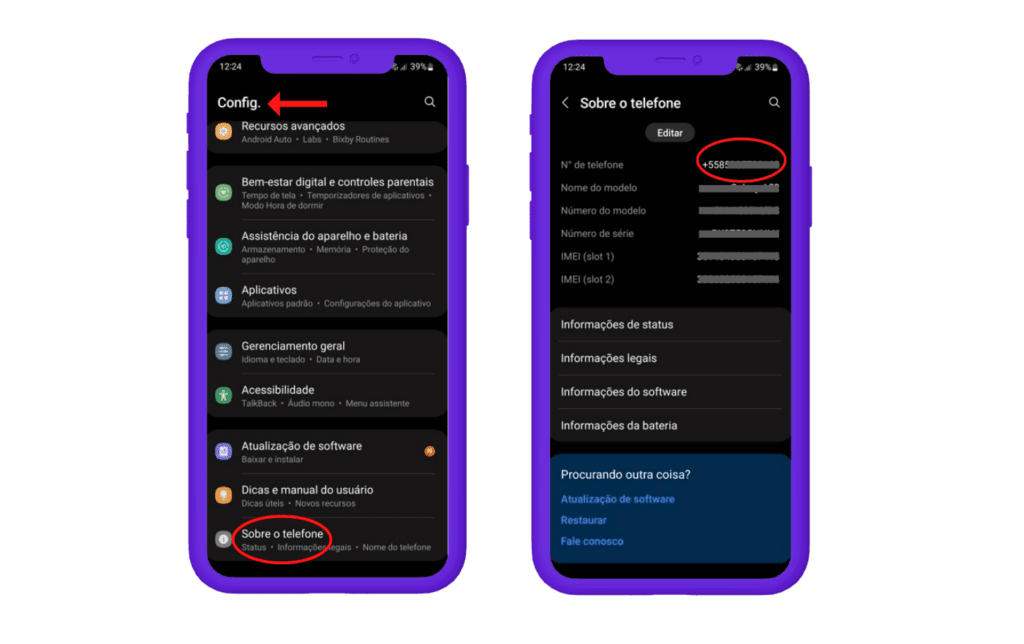 Para descobrir o número do chip no sistema operacional Android, é necessário fazer o seguinte passo a passo: