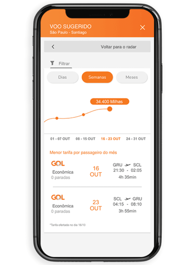 Além dessa, há outras ferramentas que também auxiliam, como o Radar da Smiles que mostra o histórico de preço dos voos da Gol.