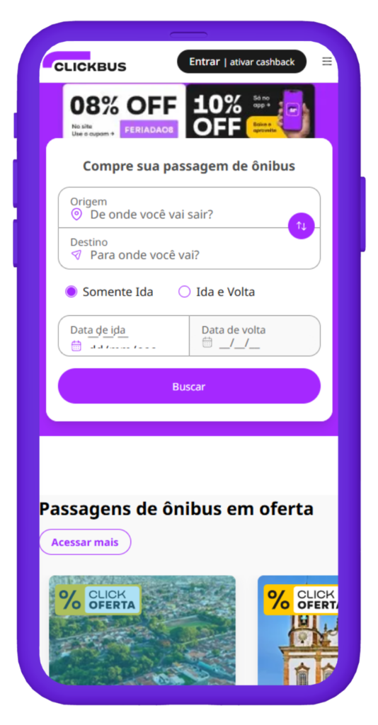 1. Acesse o site da ClickBus ou app (disponível para Android e iOS)