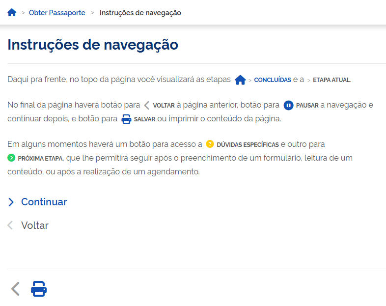 Depois dessa etapa de pré-preenchimento, você poderá ver os documentos exigidos de acordo com as características de perfil que você informou. Depois, é só seguir as instruções para preencher de fato o formulário.