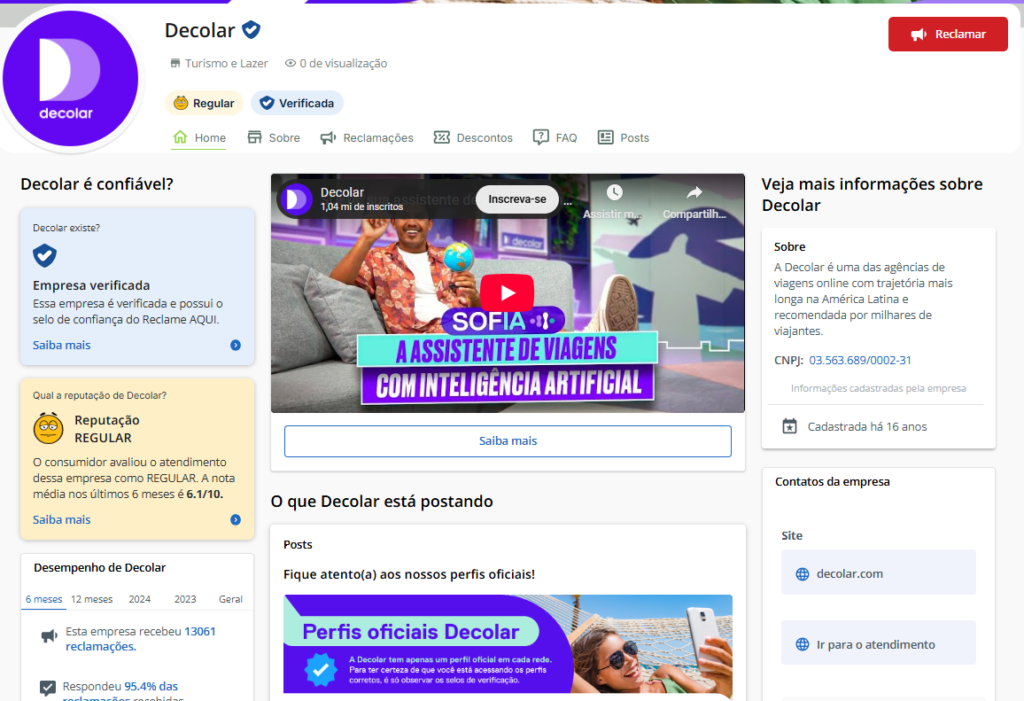 Vale lembrar que a empresa possui redes sociais. Então, basta procurar no Instagram, Facebook ou X( Twiter) por @decolar.