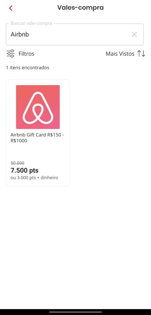 Resgate de pontos Esfera por gift-cards Airbnb.