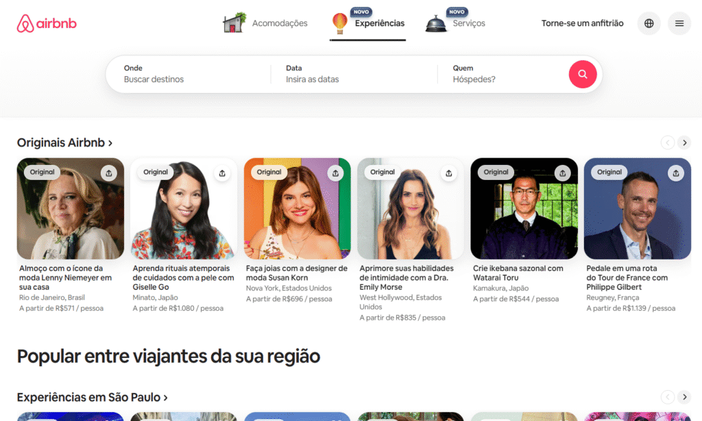 O Airbnb é uma plataforma sólida e diversificada que vai além do aluguel: conecta pessoas, experiências e serviços.