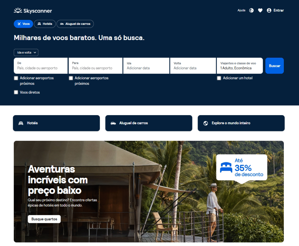 Um dos maiores buscadores de viagens do mundo, o Skyscanner é uma ferramenta extremamente poderosa.