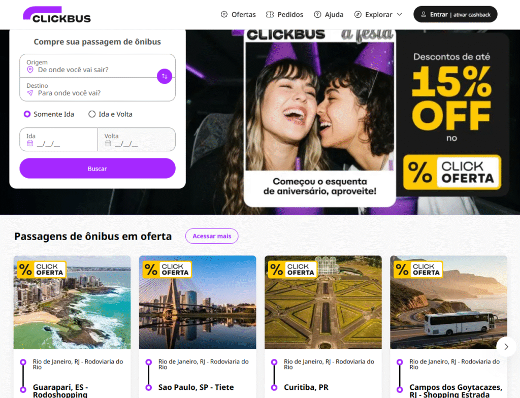 Tela principal do site ClickBus.