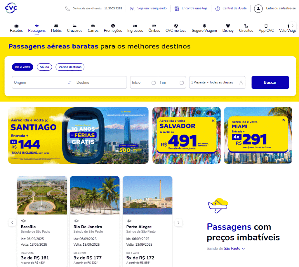 Antes de fechar, compare preços em ViajaNetDecolar, LatamSkyscanner, etc., para encontrar a melhor opção.
