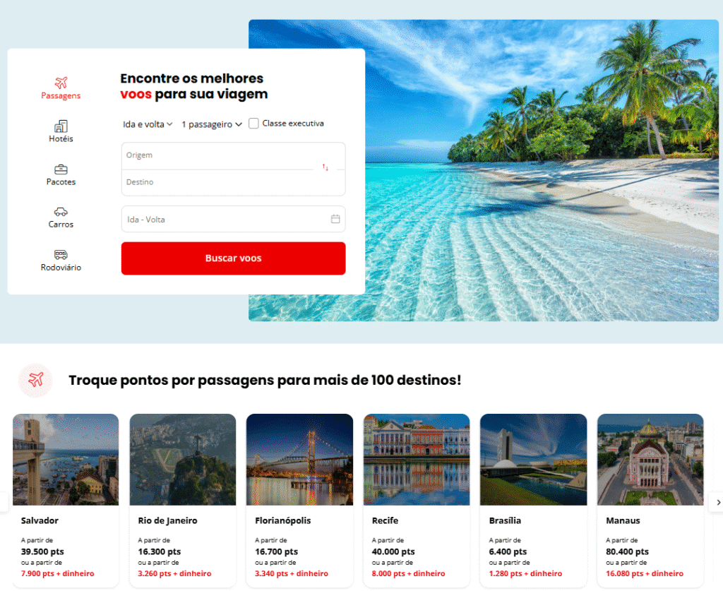 Com o Esfera Viagens, é possível usar ou acumular pontos para não só emitir passagem passagem, mas para contratar pacotes completos e até serviços relacionados, como aluguel de carro com pontos Esfera.