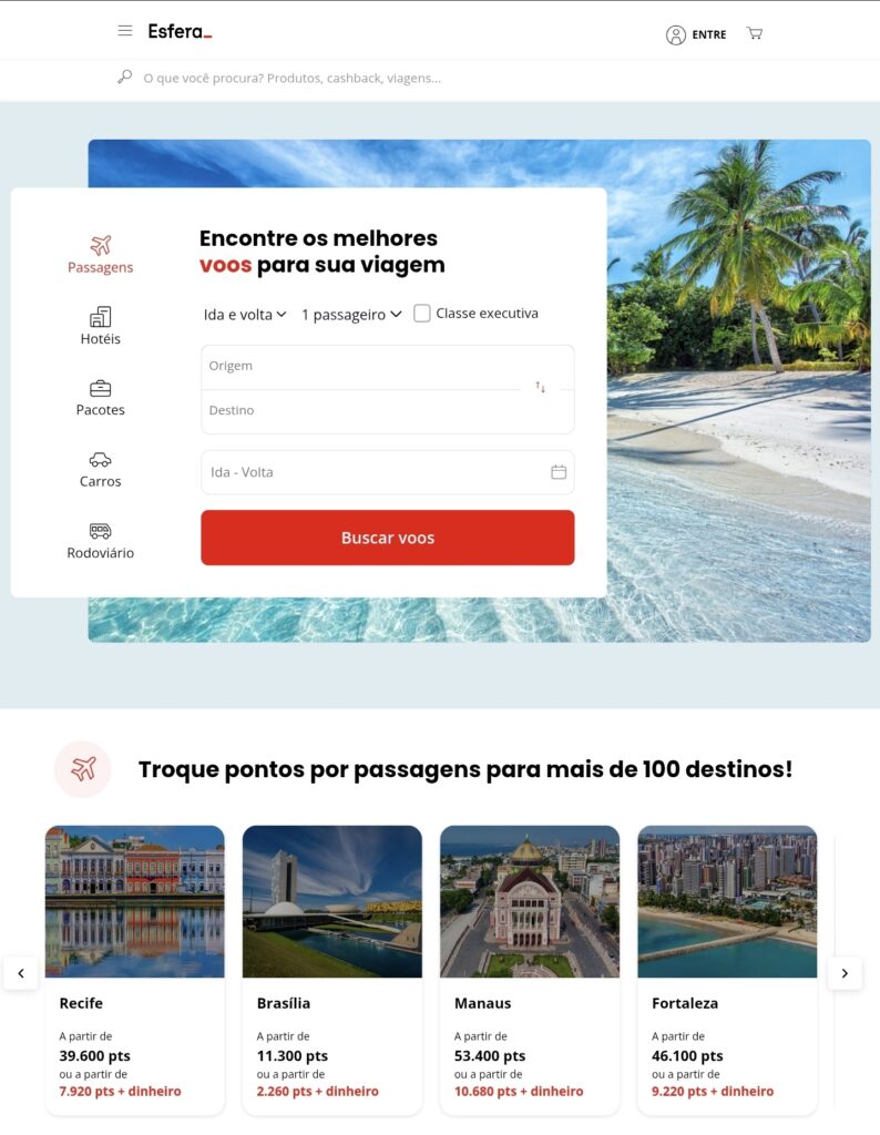 Além das empresas de viagem, os programas de pontos geralmente também possibilitam a compra de passagem aérea, pacotes de viagem e até alugar carro, como é o caso da Esfera.