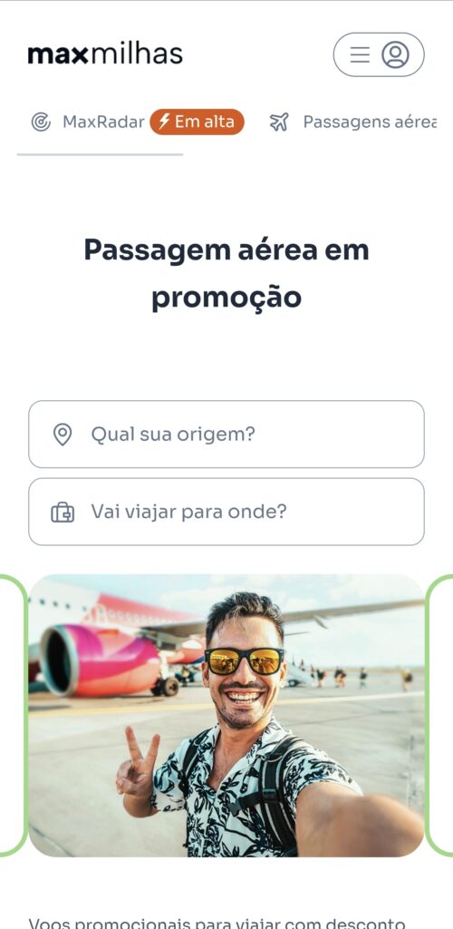 A MaxMilhas reúne passagens com descontos em passagens utilizando milhas de terceiros. Ideal para quem quer viajar barato mesmo sem acumular pontos.