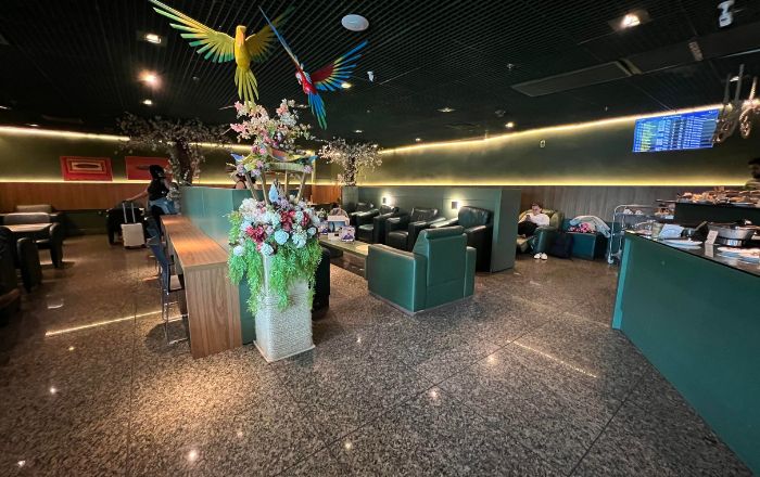 - Conexões para dispositivos eletrônicos: o lounge oferece várias estações de carregamento para dispositivos eletrônicos, garantindo que os passageiros possam manter seus aparelhos carregados;