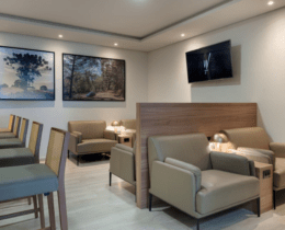 Localizado na área de embarque, em frente ao portão 4, o W Lounge Goiânia é uma opção premium para quem busca conforto e serviços exclusivos.
