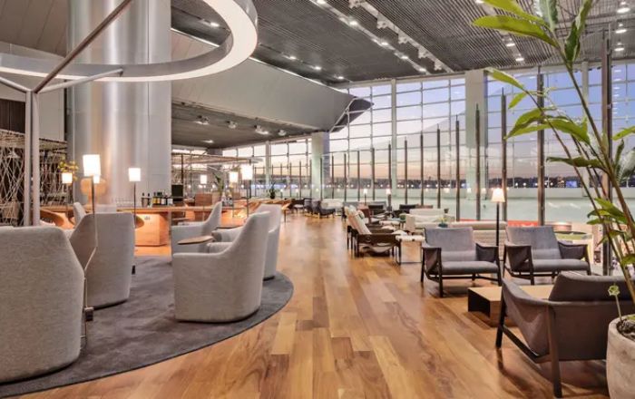 Nessa sala, o passageiro tem acesso a poltronas confortáveis, Wi-Fi, ducha, além de serviço de buffet com itens da gastronomia local, além de bebidas quentes e frias e alcoólicas e outros serviços.