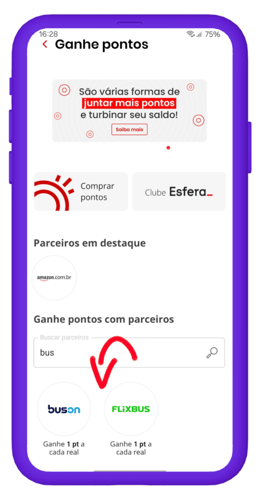 Clientes Esfera conseguem pontuar comprando passagem pela Buson e FlixBus. Assim, mesmo que você não se encaixe no grupo da gratuidade para viagem de ônibus, é possível acumular pontos e trocar por benefícios depois.