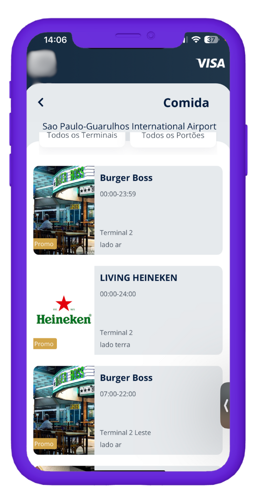 Os usuários poderão usufruir da Visa Infinite Lounge, a nova sala VIP exclusiva no aeroporto de Guarulhos.*