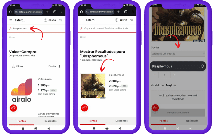O processo de obtenção do voucher é bastante simples e intuitivo. A seguir, você pode consultar um passo a passo para te guiar ao longo do resgate na Esfera: