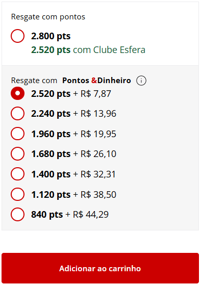 Com ele, você pode usar uma quantidade de pontos de acordo com a sua vontade e pagar o restante do resgate com seu dinheiro.