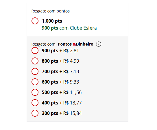 Para quem não é assinante do Clube Esfera, a aquisição mínima de mil pontos avulsos pode custar aproximadamente R$ 70,00.
