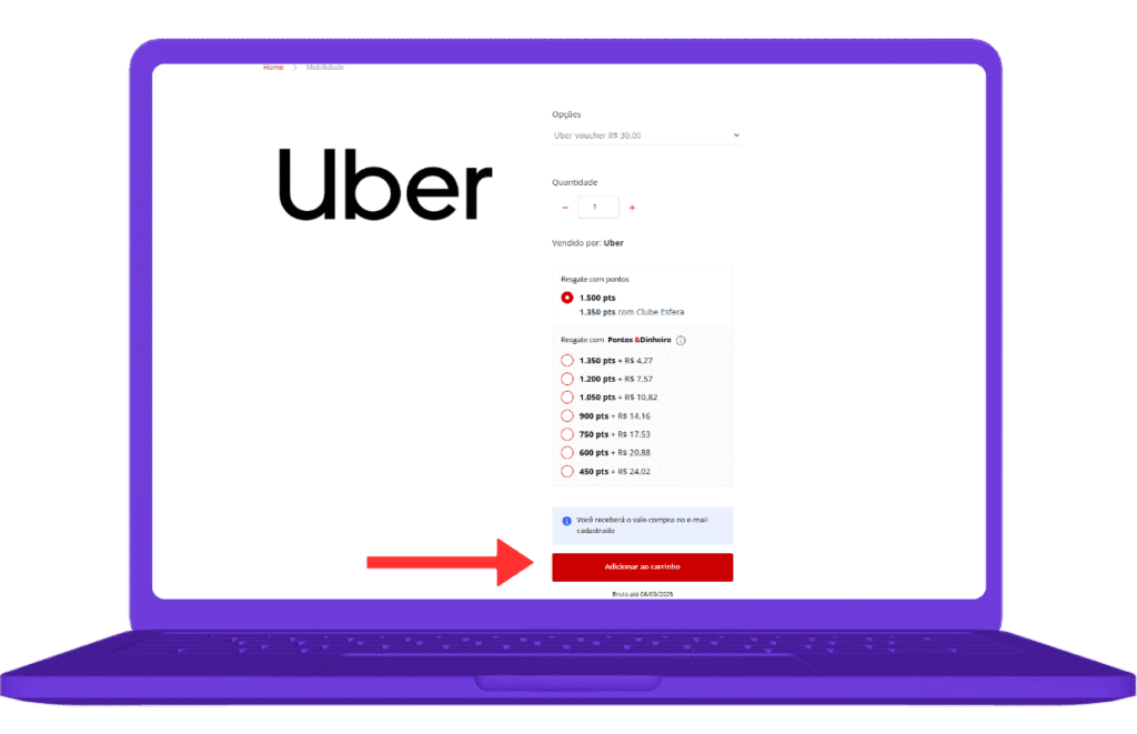 Então, o que era um saldo de pontos vira um saldo em reais para você utilizar diretamente no seu aplicativo Uber, sem complicações.