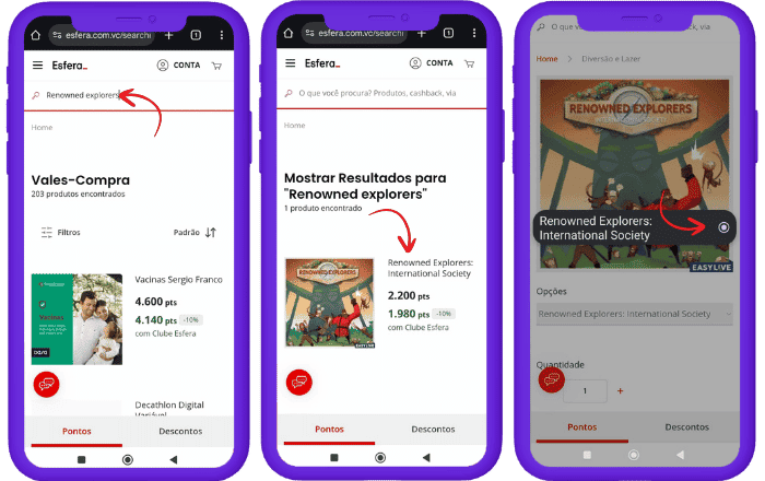 O resgate do voucher Esfera para adquirir o jogo Renowned Explorers International Society na Esfera é simples e muito intuitivo.