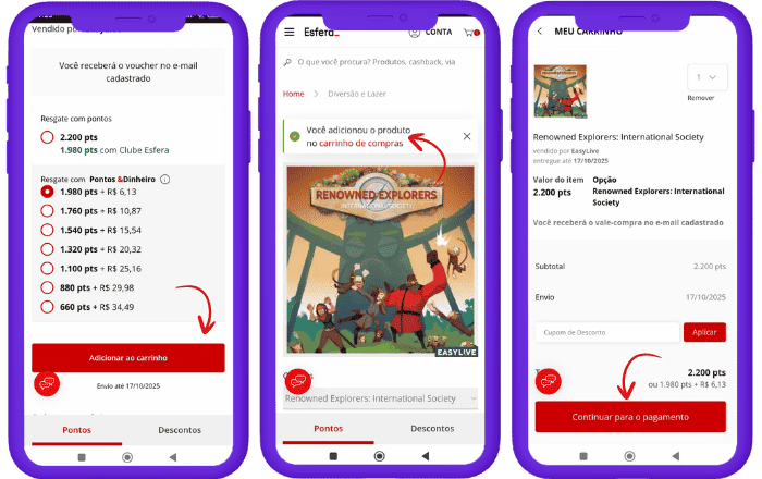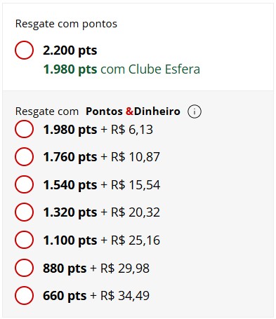 Isso permite que você resgate seus itens sem precisar gastar nada a mais por isso, ou combinar uma parte dos seus pontos com um pequeno pagamento em dinheiro.