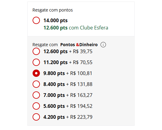E paga apenas R$ 100,81 para cobrir a diferença dos 4.200 pontos restantes.