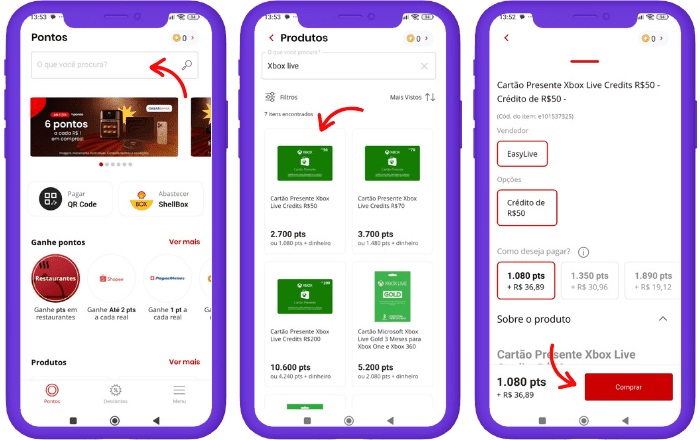 7. Por fim, escolha a quantidade de pontos e clique em “Comprar”.