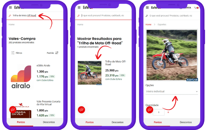 A aquisição do voucher para garantir o seu passeio na Trilha de Moto Off-Road é um processo simples que deve ser feito exclusivamente por meio do site da Esfera. Veja o passo a passo a seguir: