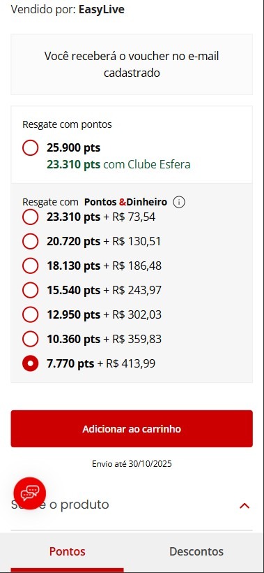 Por conta disso, você pode resgatar seu voucher usando somente sua pontuação, sem a necessidade de pagar um valor a mais pela aquisição.
