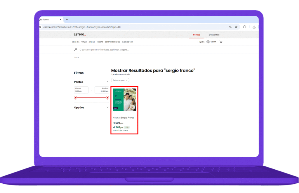 Como trocar pontos Esfera pelo vale Vacinas Sergio Franco no App