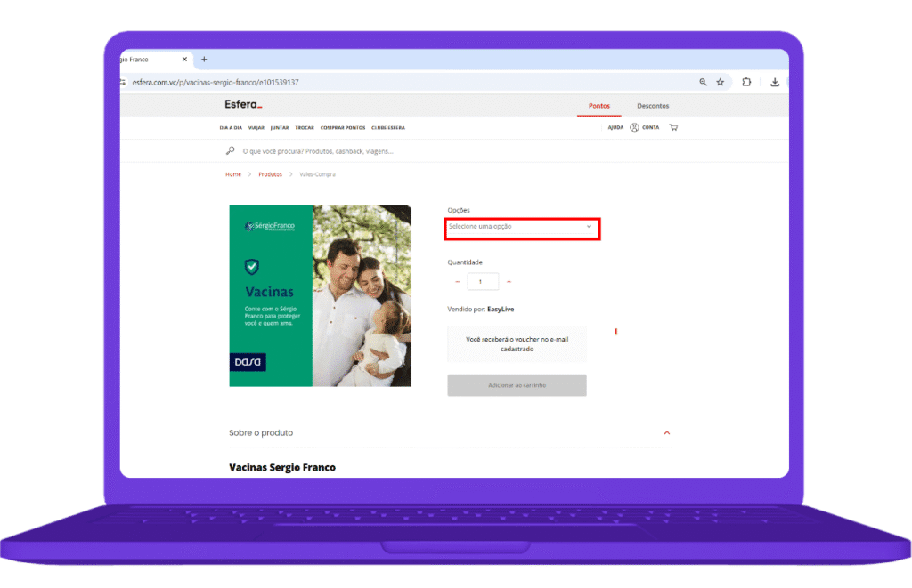 Resgate do voucher Vacinas Sergio Franco pelo site Esfera