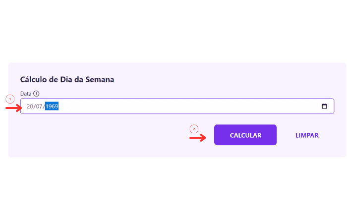 Para utilizar a Calculadora de Dia da Semana, não tem segredo! Basta: