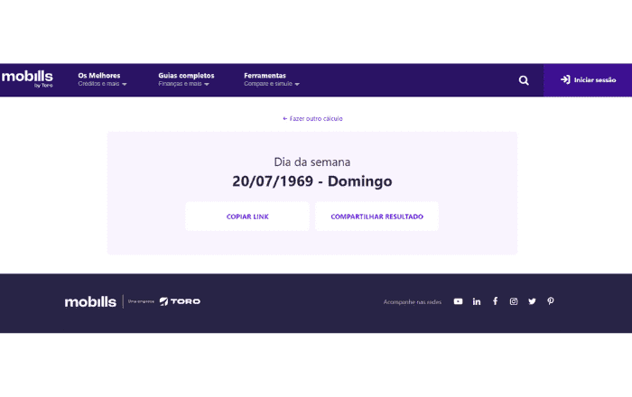 Agora que você já sabe que o homem pousou na lua em um domingo, que tal descobrir outras datas? Pode ser o dia do seu aniversário, o próximo feriado ou até em que dia da semana será o Réveillon!