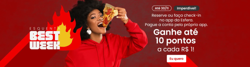 O Esfera Restaurantes é uma oportunidade deliciosa de ganhar pontos no programa de fidelidade! E, até 30 de novembro, a plataforma está com uma oferta especial: até 10 pontos por real.