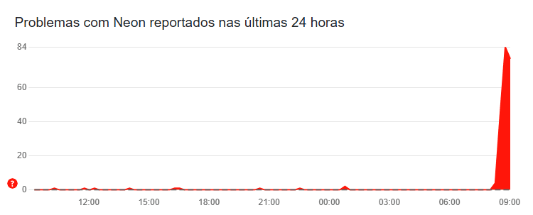 Hoje, às 9h, ela lançou um alerta sobre o Neon, que está fora do ar. Muitos usuários estão registrando problemas no banco, especialmente para acessar o seu aplicativo.