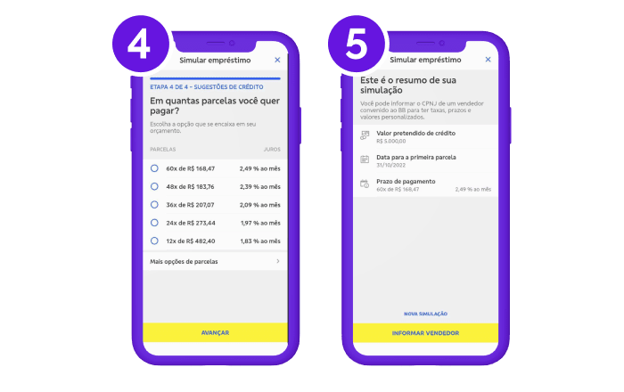 Se a linha de crédito estiver disponível, pois neste momento apenas alguns perfils de usuários estão recebendo o acesso, será possível simular a contratação.