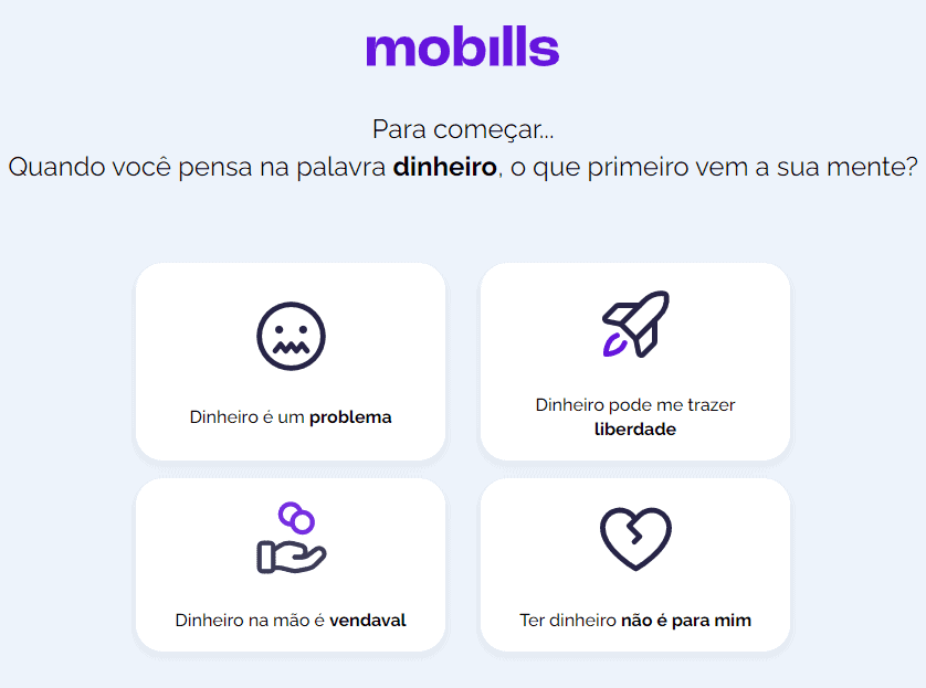 A Mobills, como dito anteriormente, oferece um diagnóstico gratuito para que você possa se situar em relação às finanças.
